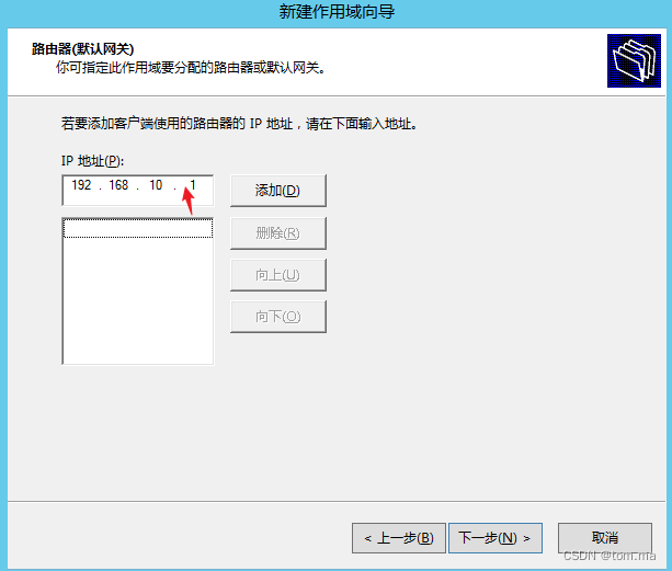添加地址范围,因为 192.168.10.1 已经被网关占用了,所以从 2 开始