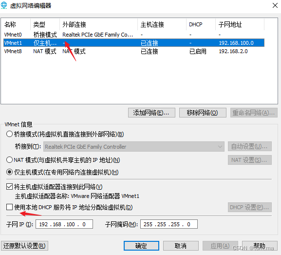 (1)创建一台虚拟机,网络选择 "仅主机模式",并关闭DHCP