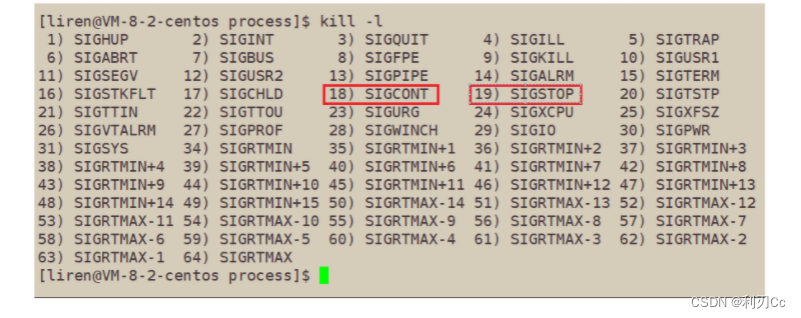 而这两个信号是在 kill 指令中的,我们可以用下面的指令来查看 kill 的指令选项: