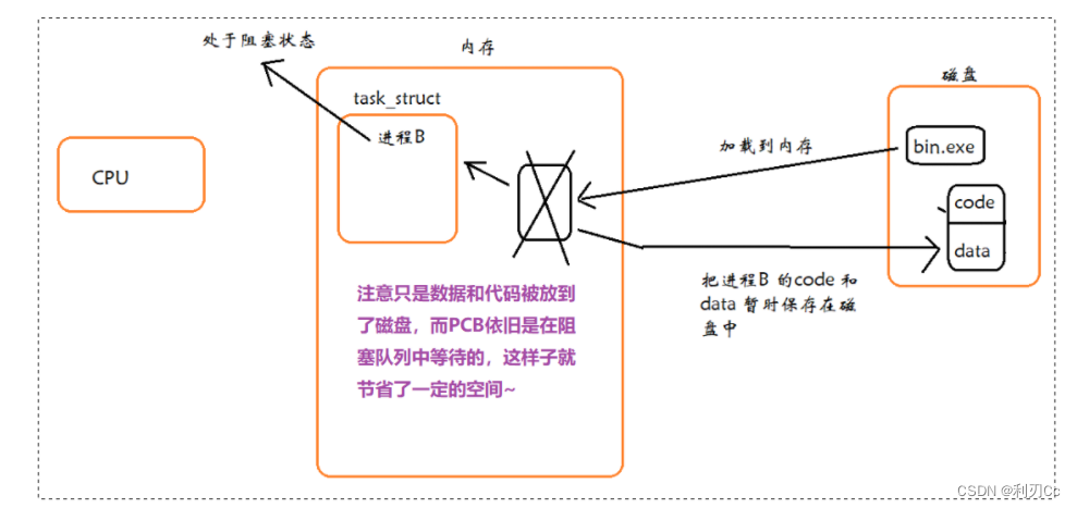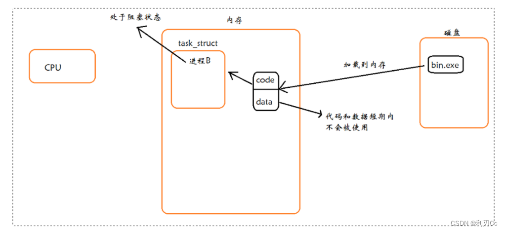 在这个过程中,进程B 也短时间内不会被调度,也就是不会被 CPU执行,该进程的 代码和数据 短期内不会被使用。