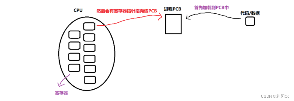 这个时候如果有一个进程需要我们加载到内存的话,那么就会有寄存器指向该进程的结构体PCB,如下图: