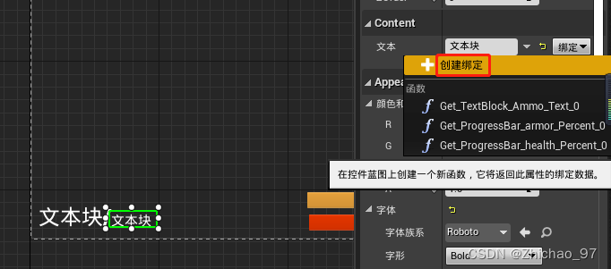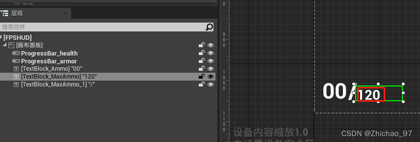 2.打开“FPSHUD”,添加一个文本块控件用来显示剩下的子弹数