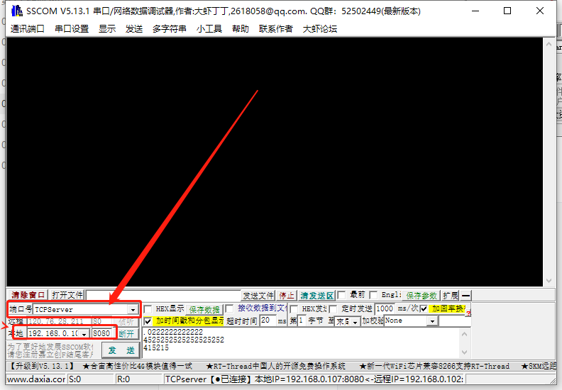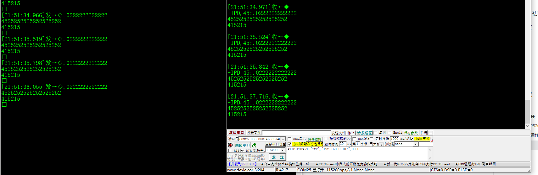 然后我们对其进行连接:下面这种就是成功了。如果出现 error CLOSED,需要检查是否在同一局域网下,以及要把这个串口工具添加到入站规则同时添加8080这个端口(具体的请百度)