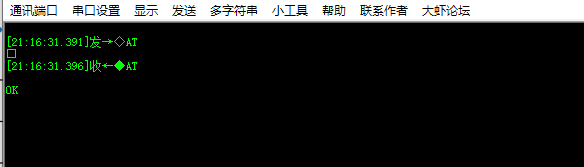 我们在发送区发送AT。如果得到OK,那么说明是可以正常通信的。
