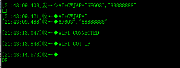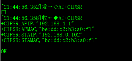 AT+CWJAP="SSID","password" // SSID and password of router// 3. 查询 ESP8266 设备的 IP 地址