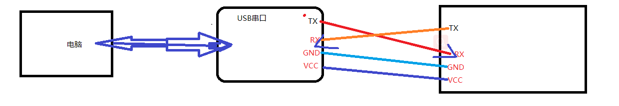 我们在电脑上使用USB转串口进行连接。具体的连接方式请根据自己手中的设备进行连接,几乎所有的无线通信都是使用AT命令来进行操作的。连接如下图: