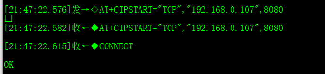 OK// 4. ESP8266 设备作为 TCP client 连接到服务器