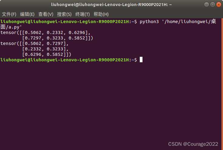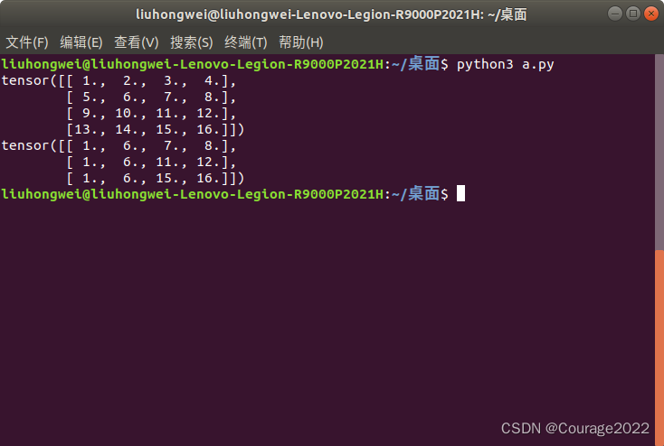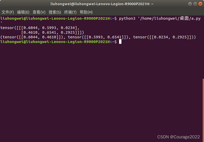 import torcha = torch.rand((1,2,3)) print(a)out = torch.squeeze(a) print(out) print(out.shape)
