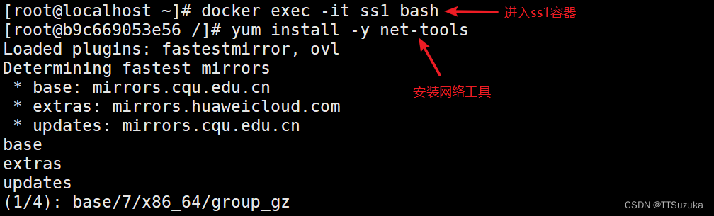 #创建并运行源容器取名ss1docker run -itd -P --name ss2 --link ss1:s1 centos:7 /bin/bash