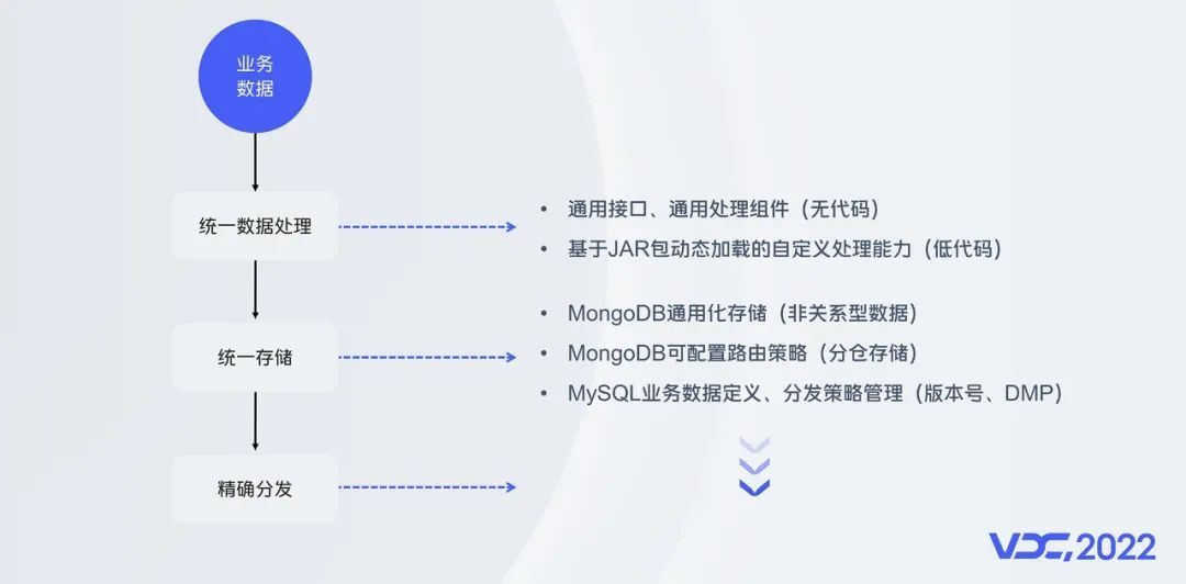 对于五花八门的运营数据我们会无差别的存放在MongoDB中;通过自定义的分仓策略来保证业务隔离和可扩展;当然也会涉及到数据的多级关联,自定义检索等,多种手段的加持下才达到最后的精确分发。