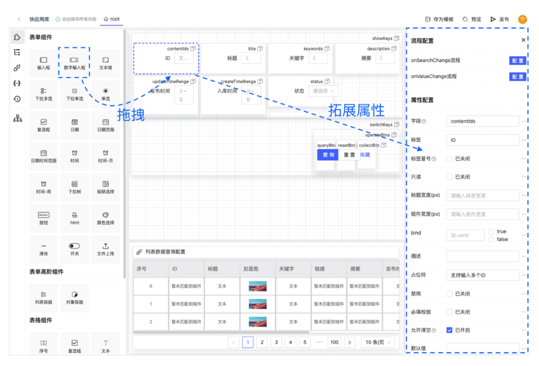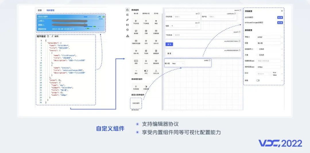 得益于开发者平台的分层设计,只需按照编辑器协议配置,自定义组件同样可以享受可视化的配置能力。
