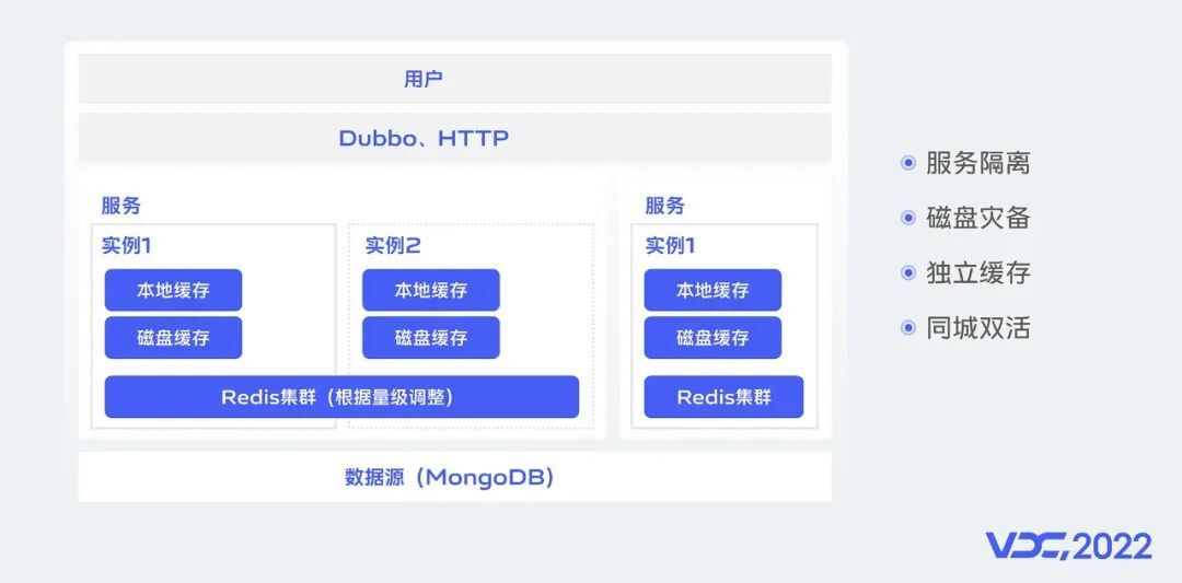 如图所示,我们在架构上采用独立镜像服务来承载各个大流量业务,各独立服务又有本地缓存、磁盘缓存和独立Redis集群来保证单体服务的高可用。