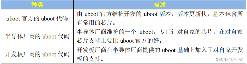 那么这三种uboot该如何选择呢?首先uboot官方的基本是不会用的,因为支持太弱了。最常用的就是半导体厂商或开发板厂商的uboot,如果你用的半导体厂商的评估板,那么就使 用半导体厂商的 uboot,如果你是购买的第三方开发板,就使用开发板厂商的uboot。