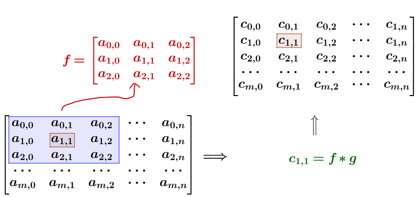 每一个像素点均可以写出来卷积公式,定义矩阵中的每一个元素为