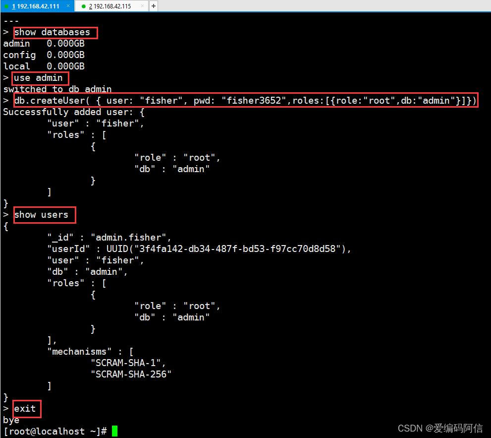 use admin --进入admin库
