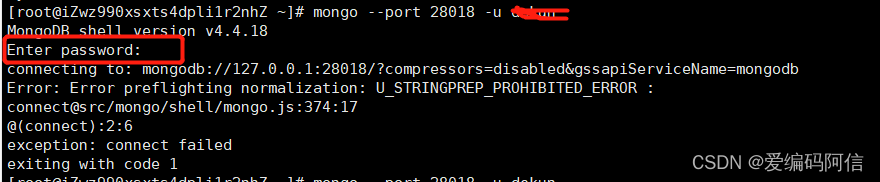 mongo --port 28018 -u 设置的用户名