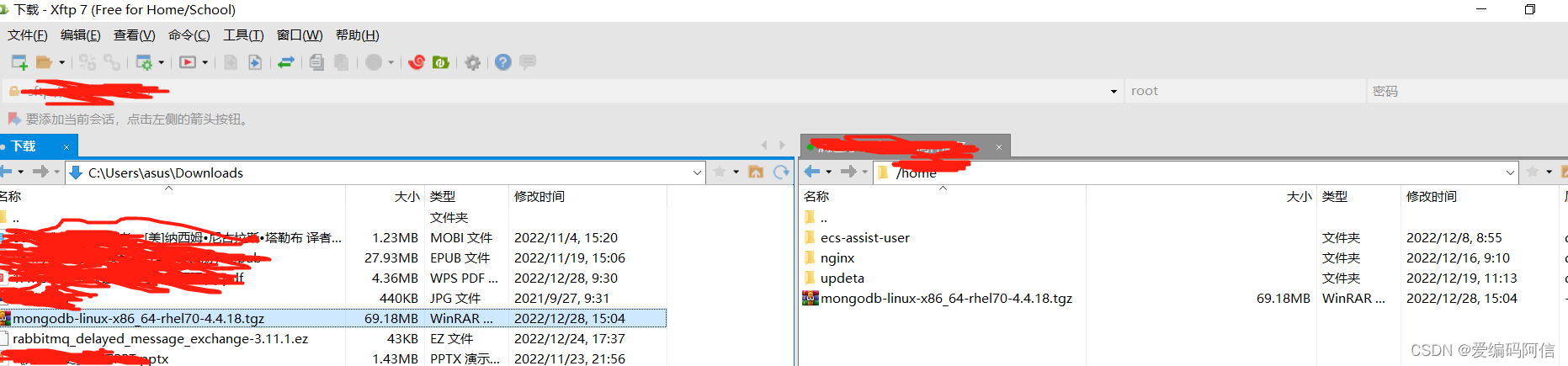 二、上传下载后的mongodb安装包,如下图