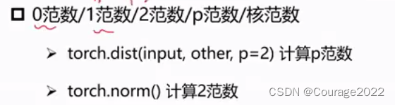 import torcha = torch.tensor([3.0,4.0]) b = torch.tensor([5.0,8.0])print(a,b) print(torch.dist(a,b,p=1)) print(torch.dist(a,b,p=2)) print(torch.dist(a,b,p=3))print(torch.norm(a))