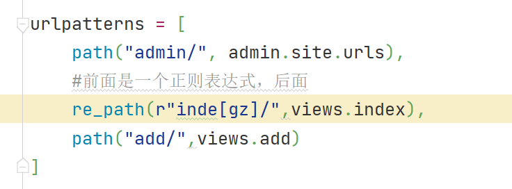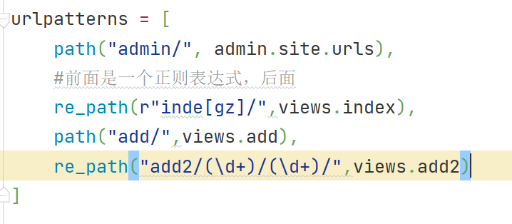 前面是一个正则表达式,后面是view函数,凡是与第一个正则表达式匹配的url请求,那么对应的后面的view函数就会被调用