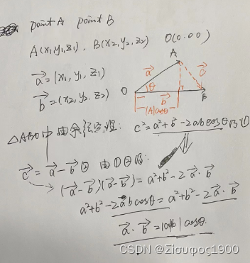 在空间中有两个向量: a=(x1,y1,z1) , b=(x2,y2,z2), a 与 b之间夹角为 θ。