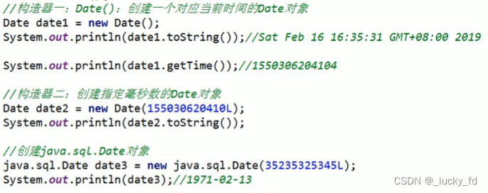 >构造器一: Date(): 创建一个对应当前时间的Date对象