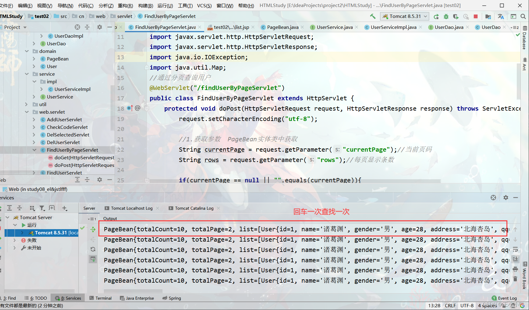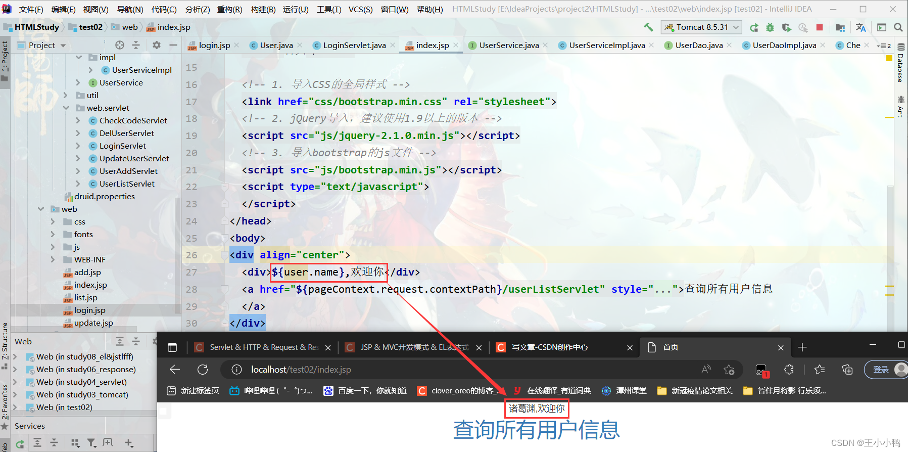 试着打印UserListServlet,