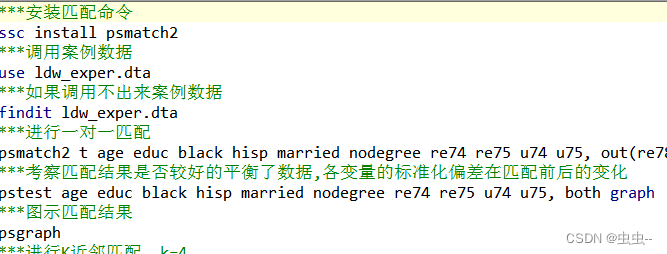 包括进行一对一匹配、图示匹配结果、进行K近邻匹配、计算倾向得分、卡尺匹配等命令代码
