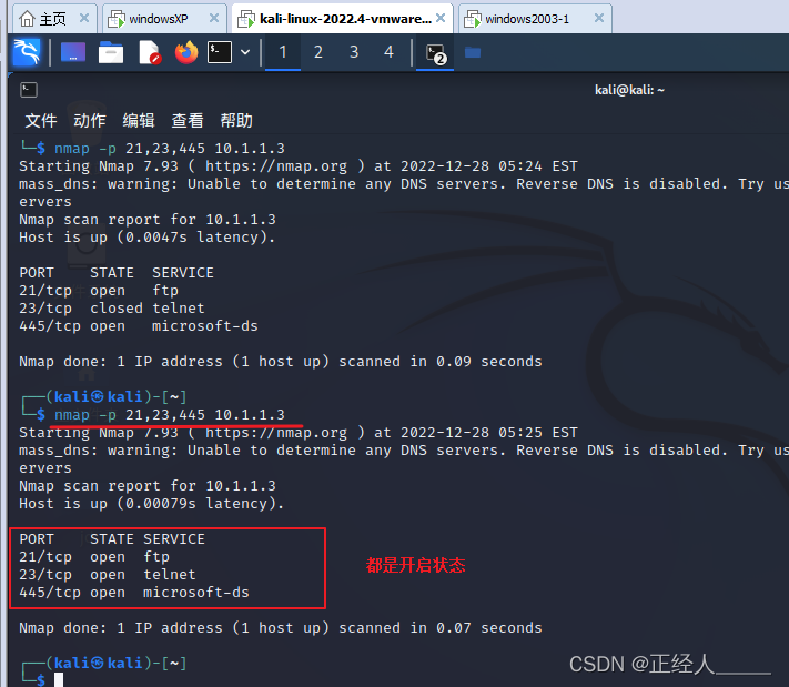 测试21、23、445端口是否开启