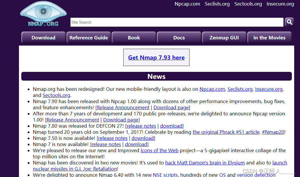 nmap被誉为“扫描器之王”,nmap为开源工具,并且是跨平台的。官方网站