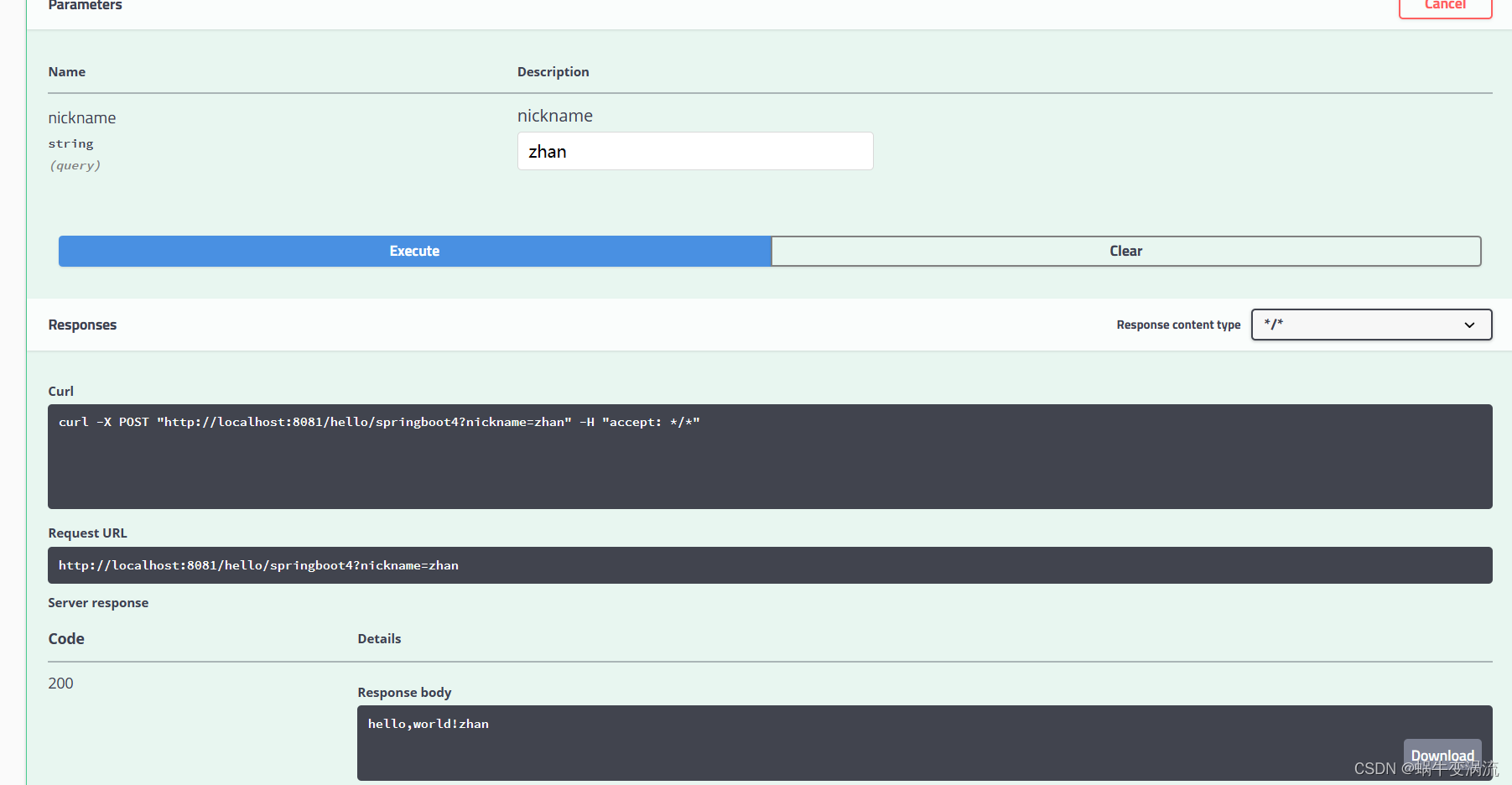 更重要的是,还能在该文档进行测试,类似于Postman的效果,这对于前后端人员交互时,是非常节省人力财力的。