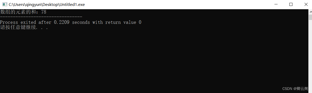 #includeint ArrayMax(int a[],int N)//求数组a中前N个元素的最大值 {int max;if (1==N) return a[0]; //基础解 max=ArrayMax(a,N-1);//划分子问题 if(max>a[N-1]) //在子问题解决的基础之上解决总问题。return max;else return a[N-1]; } int main() {int a[4]={1,2,3,4};printf("数组中的最大值是:%d\n", ArrayMax(a,4)); return 0; } 3.