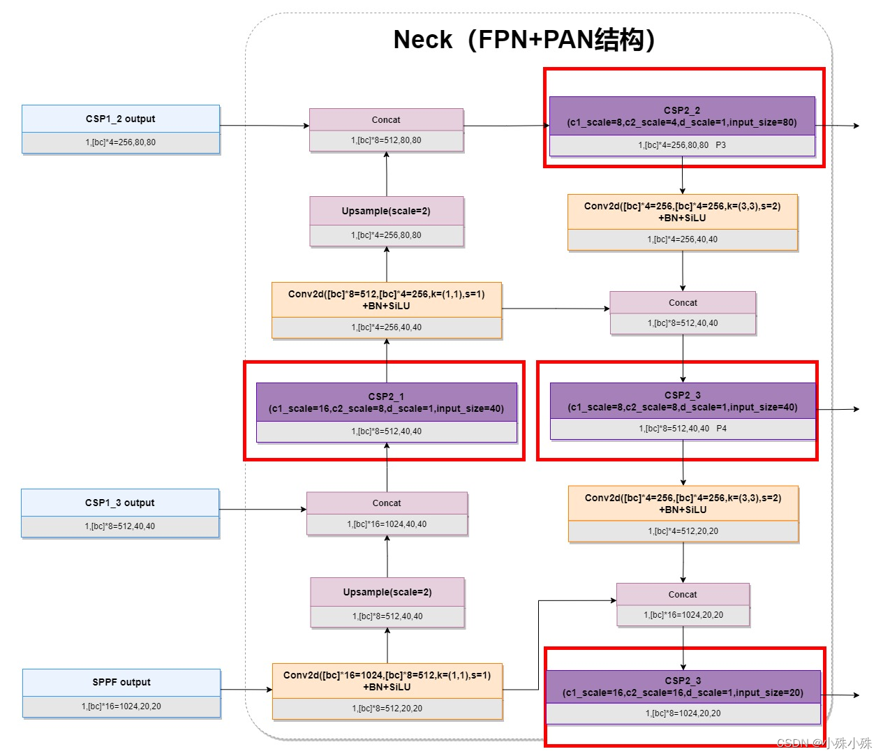 Neck还有一个改进改进的是在每次concat之后增加了没有残差的CSP块: