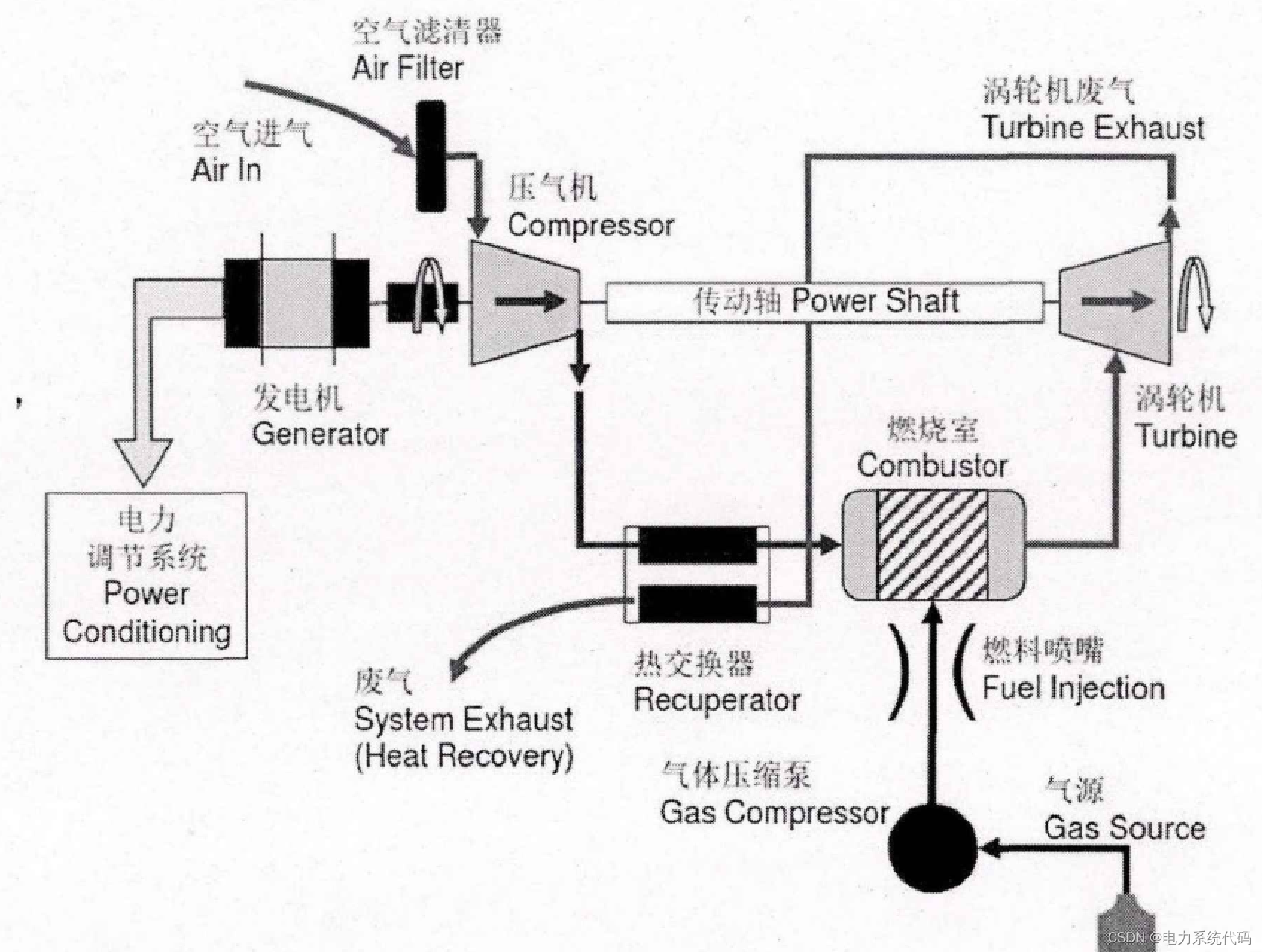 微型燃气轮机的进行工作时具体的原理如图所示: