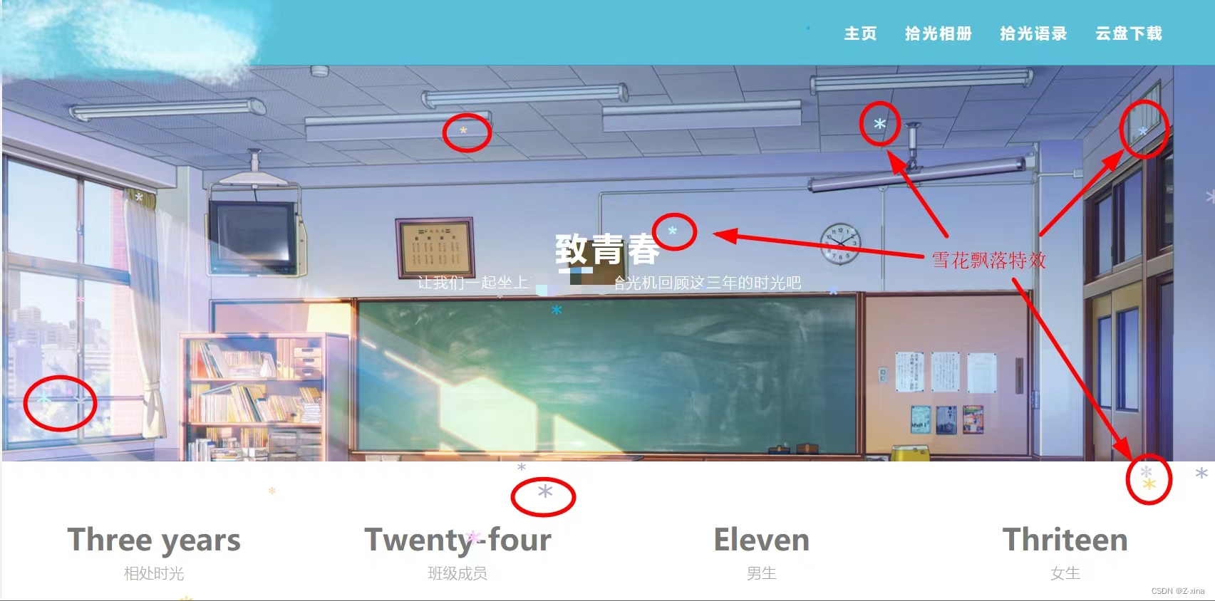 雪花飘落特效效果如下: