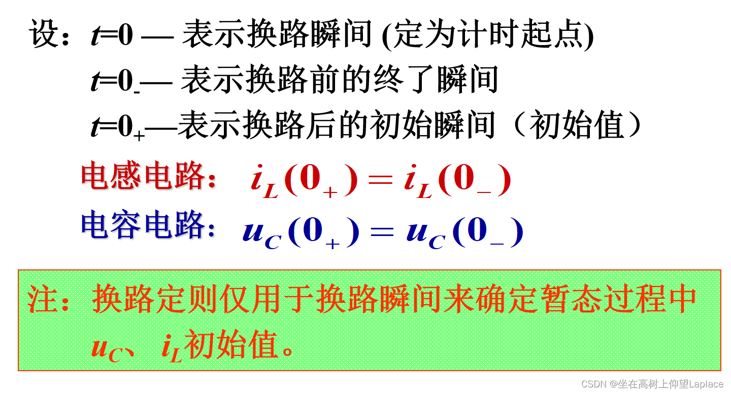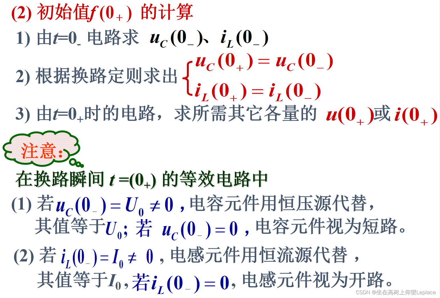 关于结论2,在0-的那一瞬间,因为没有储能,u_{C}=0,所以电容看作短路,i_{L}=0,所以电感看作开路。