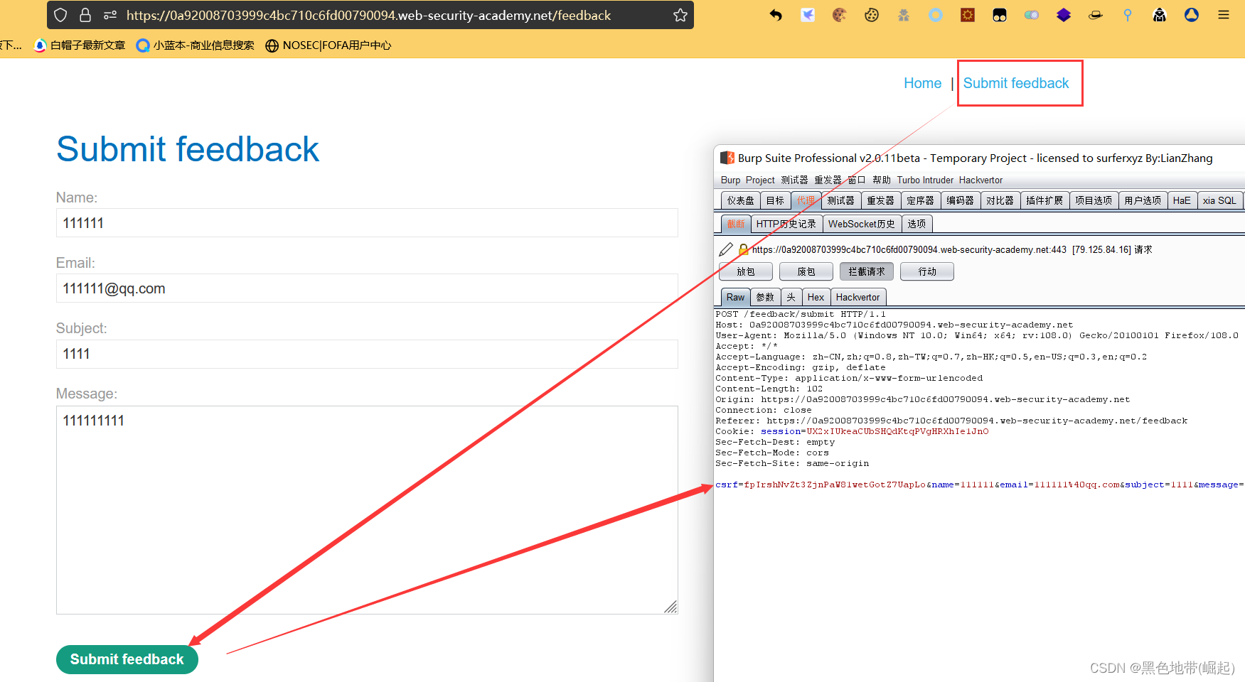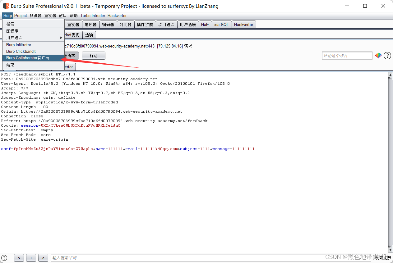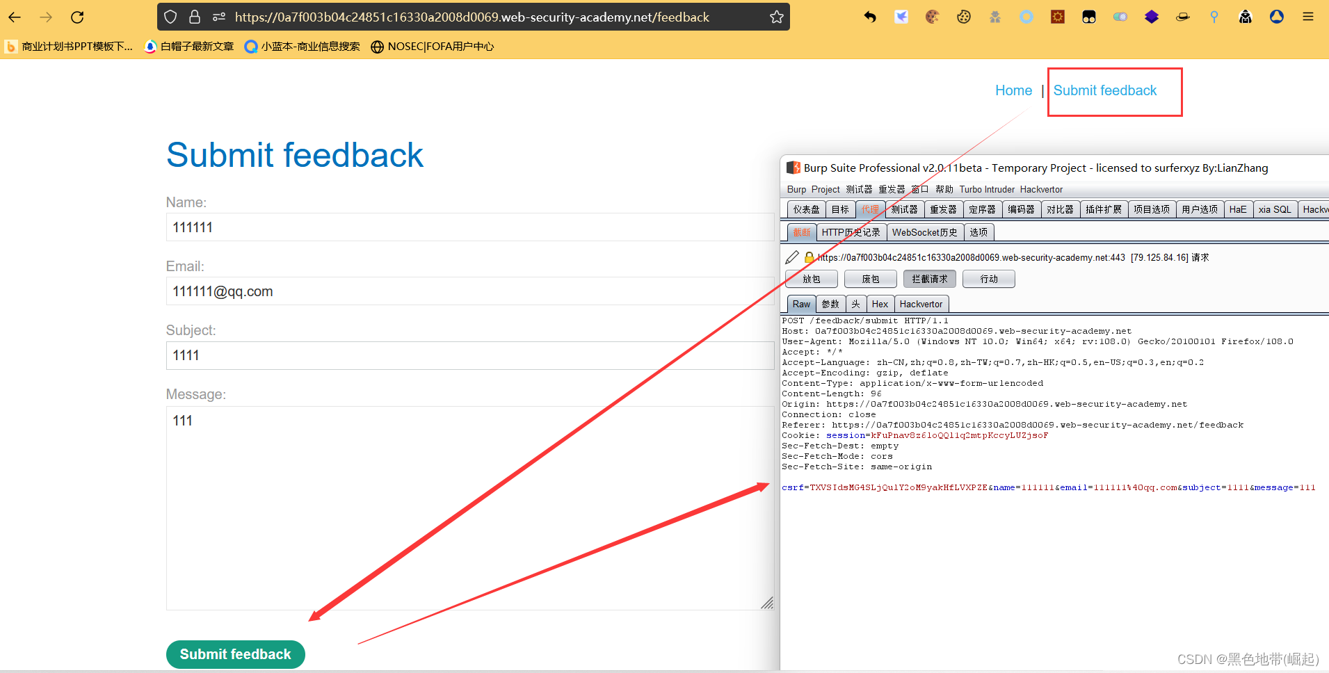 使用Burp Suite拦截和修改提交反馈的请求