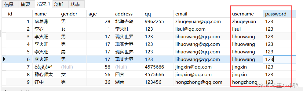 //1.设置编码request.setCharacterEncoding("utf-8");//2.获取参数Mapmap = request.getParameterMap();//3.封装对象User user = new User();try {BeanUtils.populate(user,map);} catch (IllegalAccessException e) {e.printStackTrace();} catch (InvocationTargetException e) {e.printStackTrace();}//4.调用service方法报错UserService service = new UserServiceImpl();service.addUser(user);//5.跳转到/userListServlet // 没有共享数据使用重定向 加上虚拟路径request.getContextPath()response.sendRedirect(request.getContextPath()+"/userListServlet"); UserDaoImpl中的addUser方法也优化了@Overridepublic User addUser(User user) {try {//第一版 //String sql = "insert into user2 set name = ?, gender = ?, age = ?, address = ?, qq= ?, email = ?";//第二版String sql ="insert into user2 values(null, ?, ?, ?, ?, ?, ?,null, null )";template.update(sql, user.getName(), user.getGender(), user.getAge(), user.getAddress(), user.getQq(), user.getEmail());} catch (DataAccessException e) {e.printStackTrace();}return user;}添加用户成功!