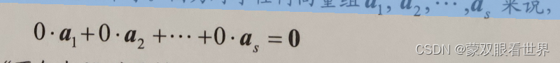 在理解这个定义时,要注意“不全为 0”这几个字。因为对于任何向量组a1,a2,...as来说,都有: