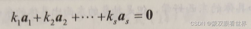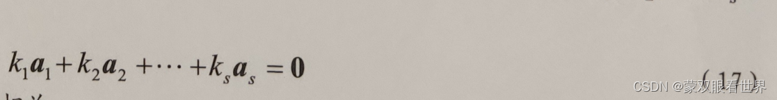 可推出K1=K2=...=Ks=0,则称向量组a1,a2,...as线性无关。这就是说,对于向量组a1,a2,...as如果只有一组全为0的数,使得式 (17)成立,则称向量组a1,a2,...as线性无关。