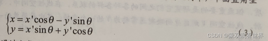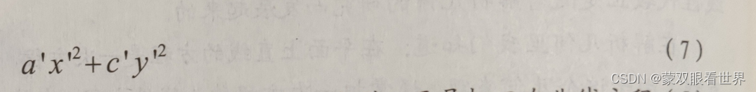 为了便于研究这条二次曲线的性质,需要坐标交换,把方程 (5)化成标准方程。如果方程 (5)中没有交叉项(即xy项)那么只需要配方,然后作移轴就可以化成标准方程了,于是关键在于如何消去交叉项,而这实质就是要把: