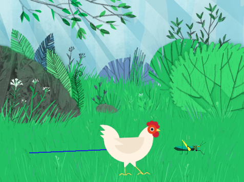 (5)当碰到“Grasshopper”时,母鸡“Hen”发出声音,“Grasshopper”消失。