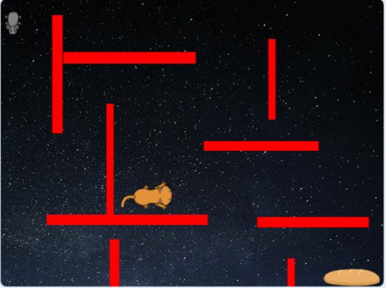 (4)Mouse1在移动过程中碰到红色的墙,回到初始位置;