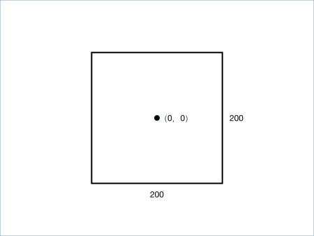 在舞台正中央绘制一个边长为200的正方形。