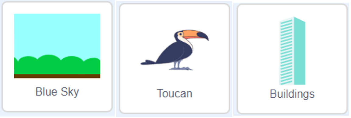 (2)导入角色“Toucan”和“Buildings” 。