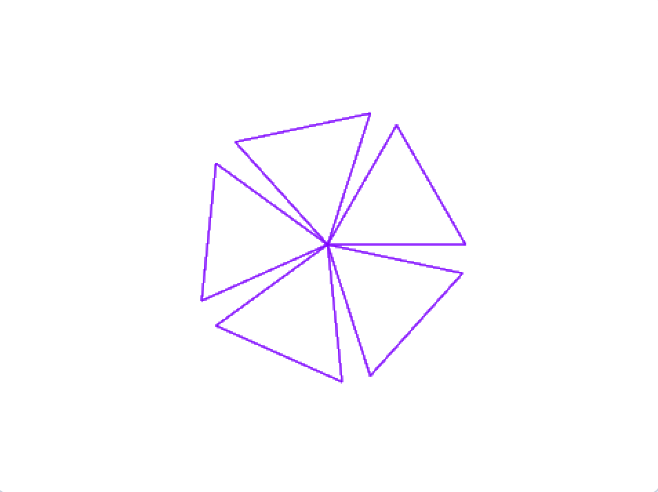 (3)点击绿旗,在屏幕上画出均匀分布的5个三角形的雪花图案。
