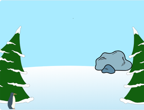 暴风雪要来了,请你在舞台上移动鼠标指示方向,指引小企鹅躲到石头后面,帮助它躲避暴风雪。